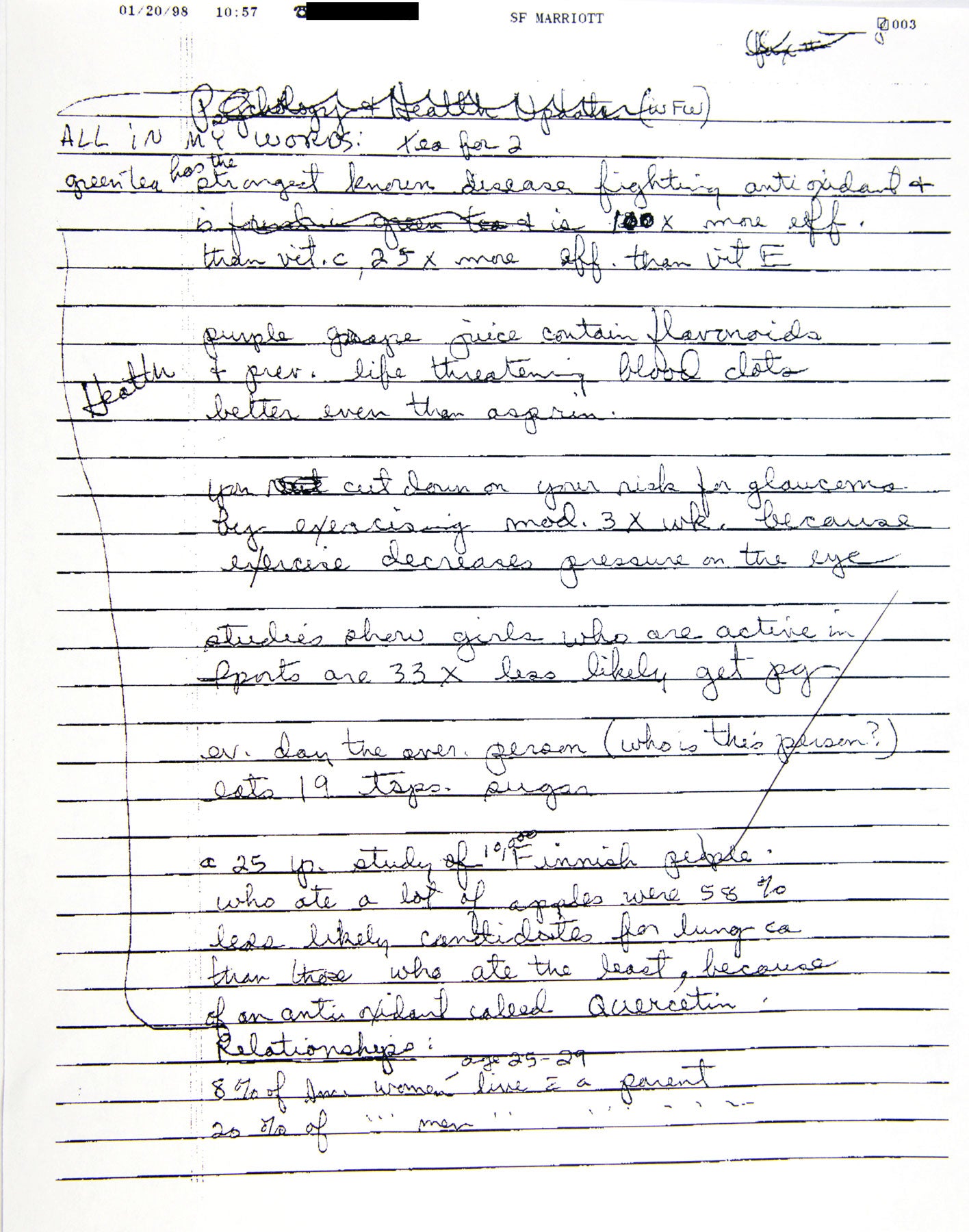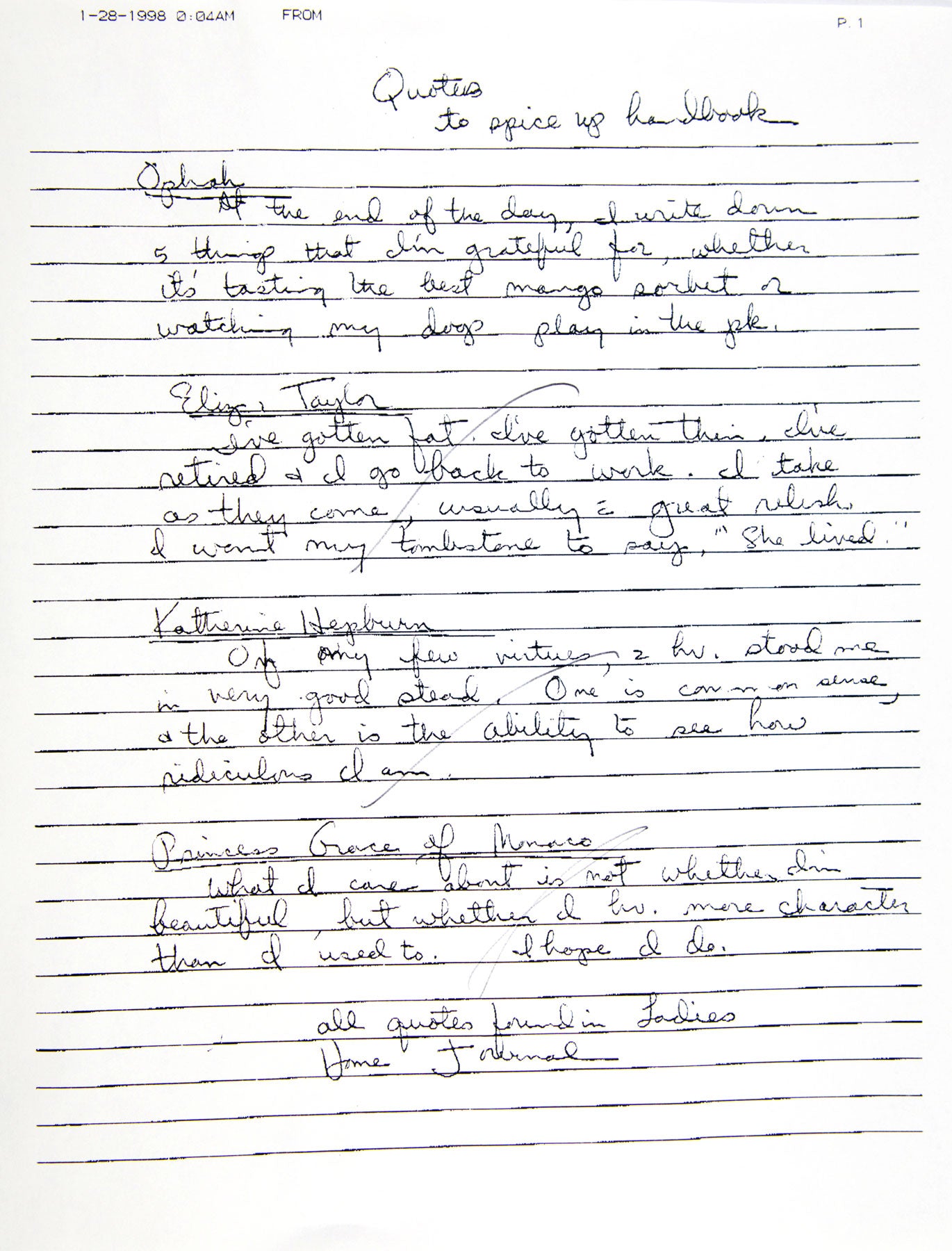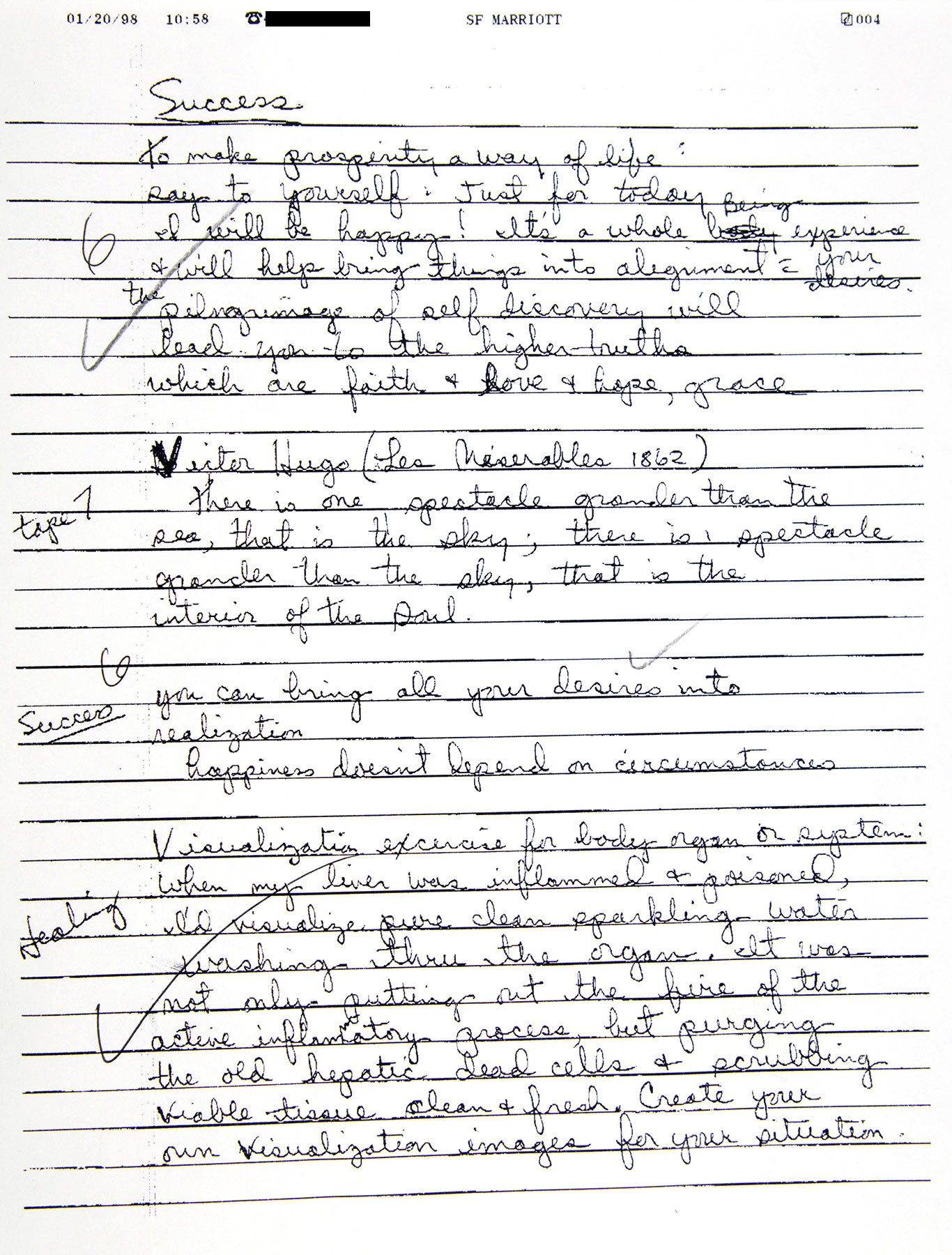 Naomi compiled these handwritten notes from 1998 as she crafted Naomi’s Breakthrough Guide, her deeply personal self-help book. Filled with reflections, insights, and guiding principles, these pages form the raw foundation of a book that would go on to inspire countless people.