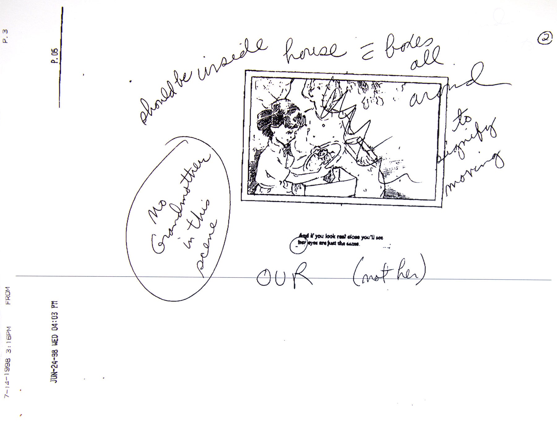The packet includes Andreasen’s revised sketches with Naomi’s handwritten notes.