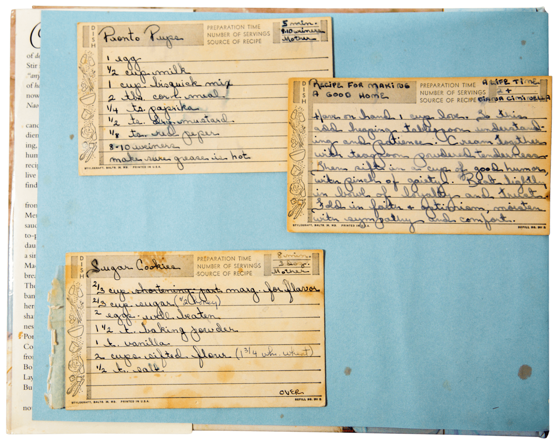 This is her personal copy, complete with additional recipe cards, a few handwritten edits, and sauce splashes from cooking.