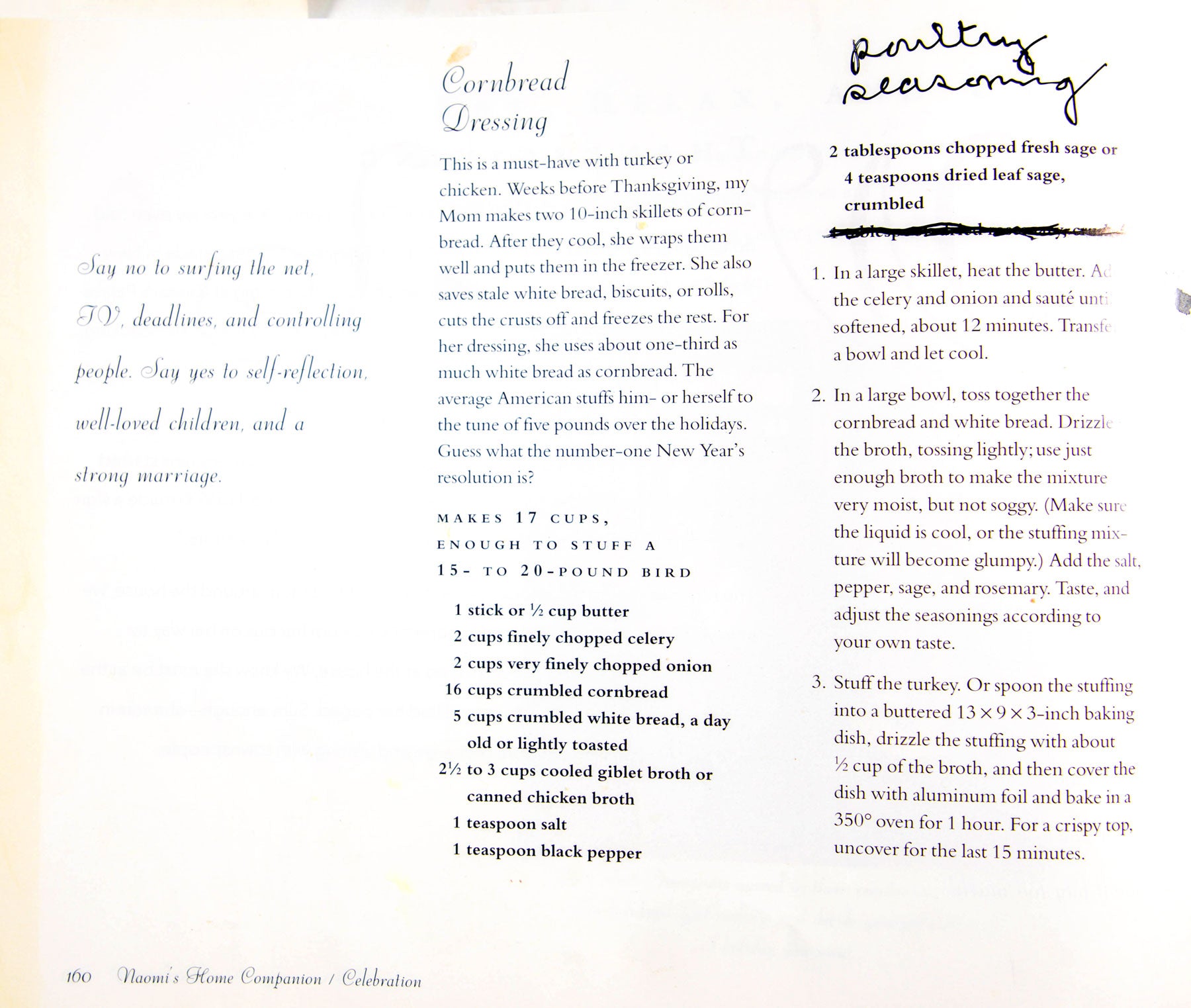 Inviting people to her table in 1997, Naomi's Home Companion was "a treasury of favorite recipes, food for thought, and kitchen wit and wisdom."