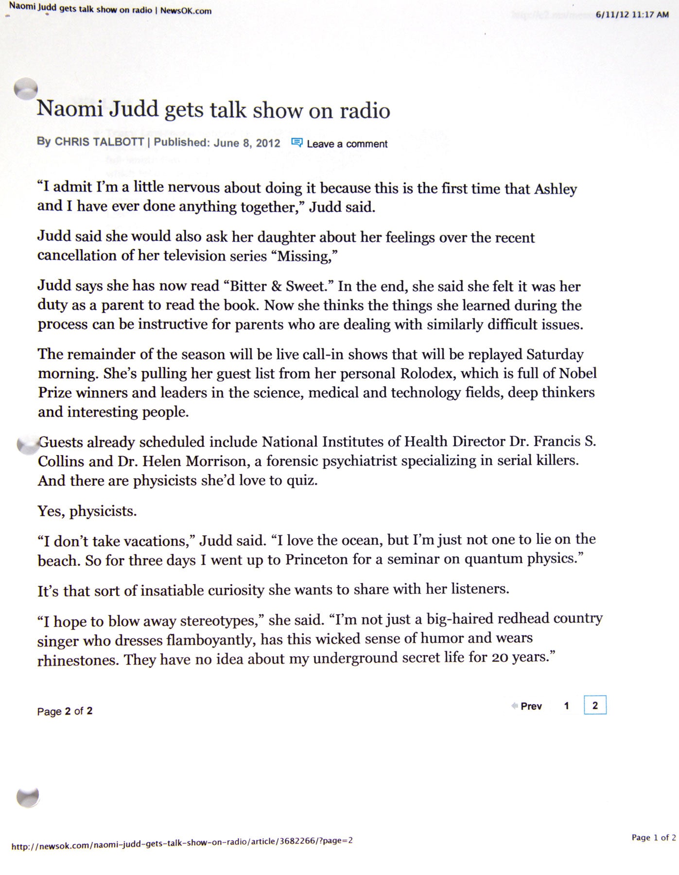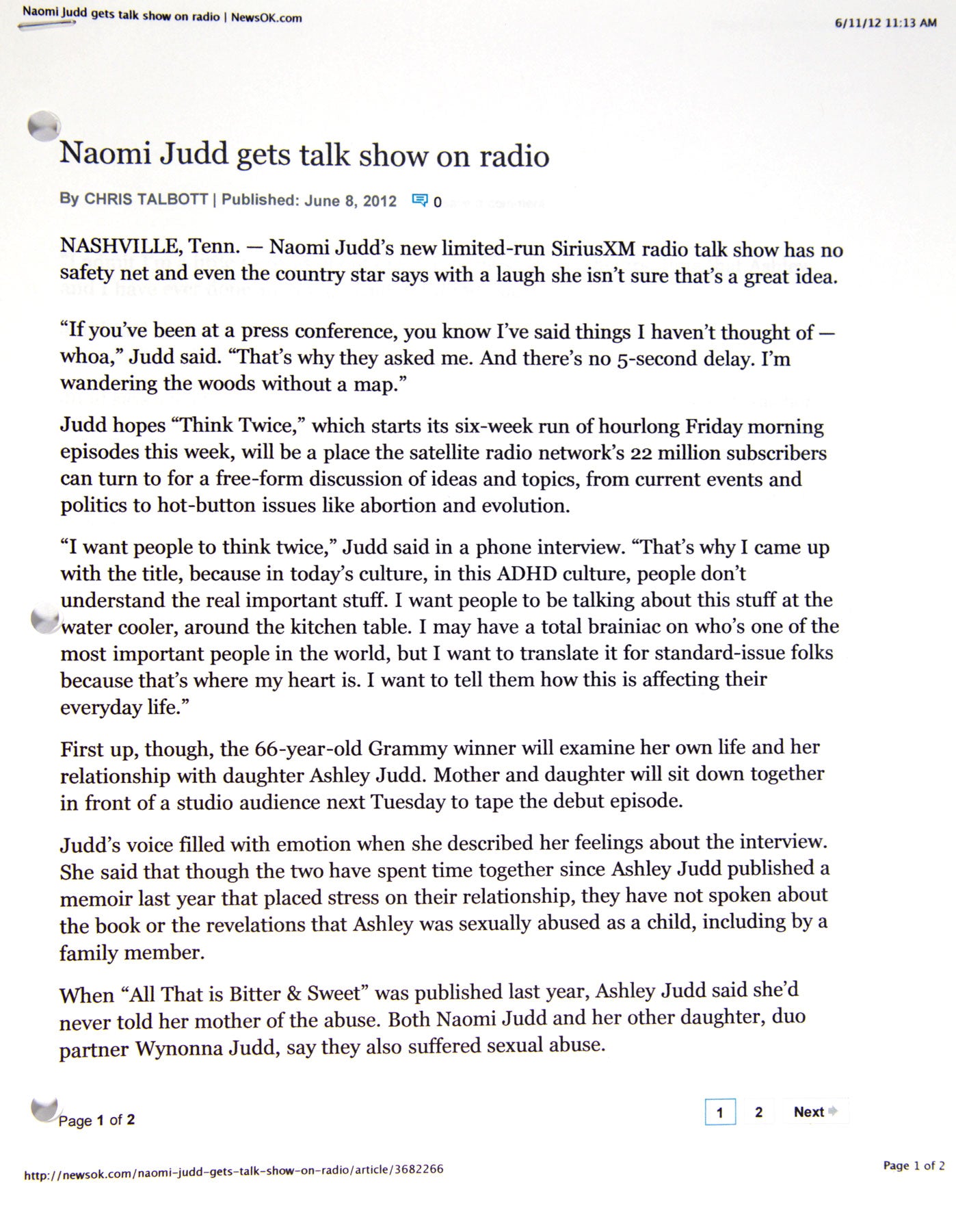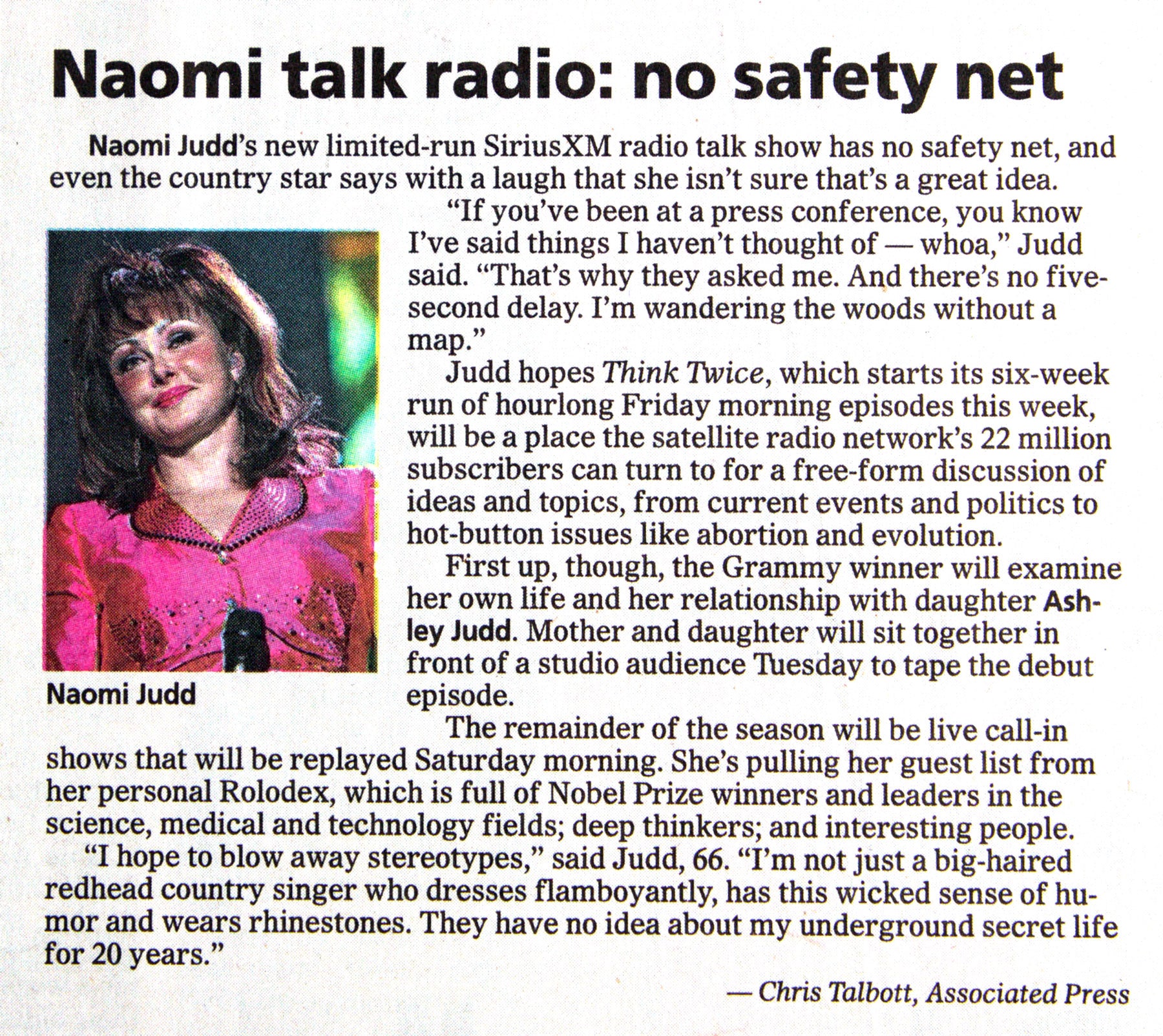 The 2012, limited-run SiriusXM talk show invited listeners to explore everything from science and politics to deeply personal stories. Guests ranged from Nobel Prize winners to psychiatrists, and Naomi made it clear she wasn’t afraid to get real. “I hope to blow away stereotypes,” she said. “They have no idea about my underground secret life for 20 years."