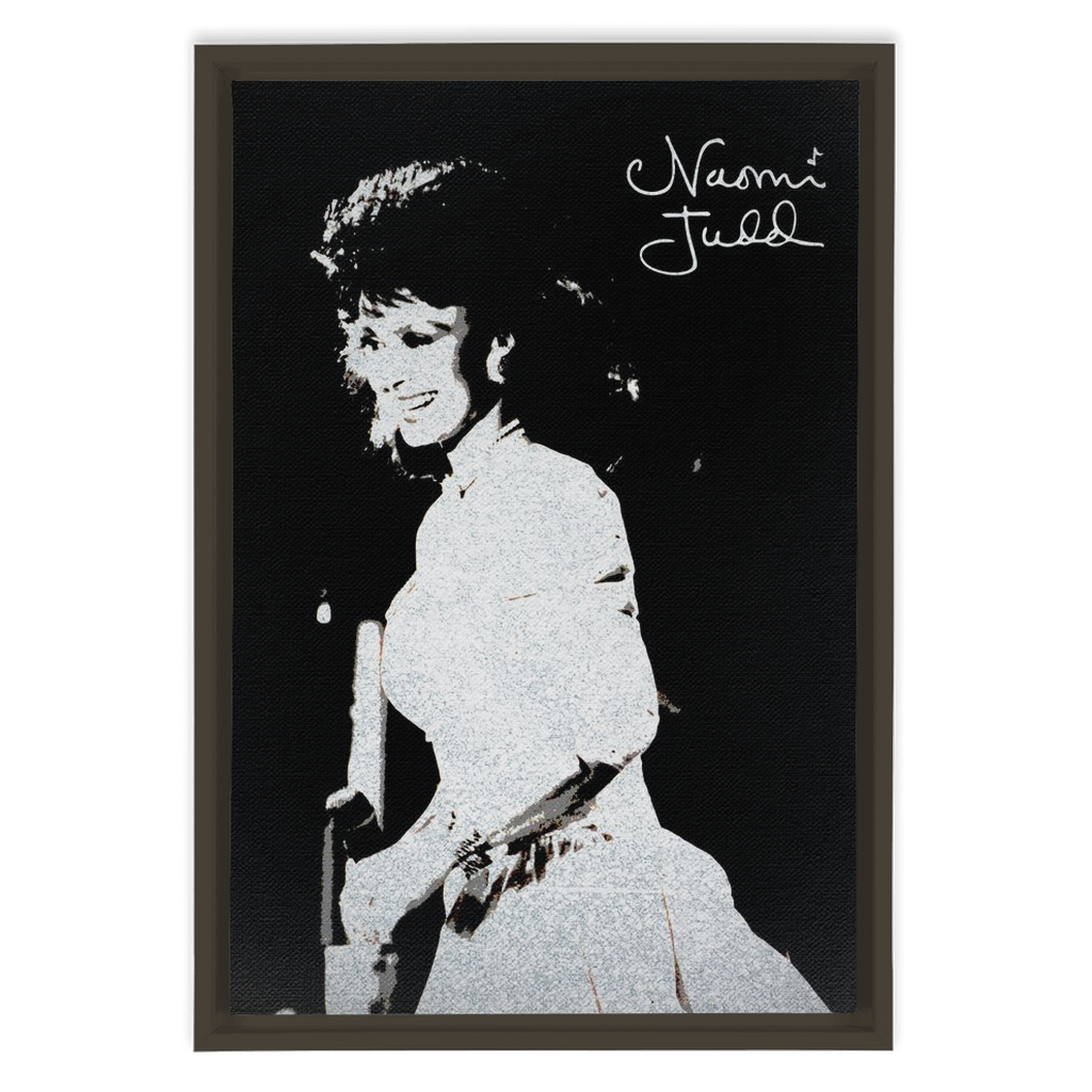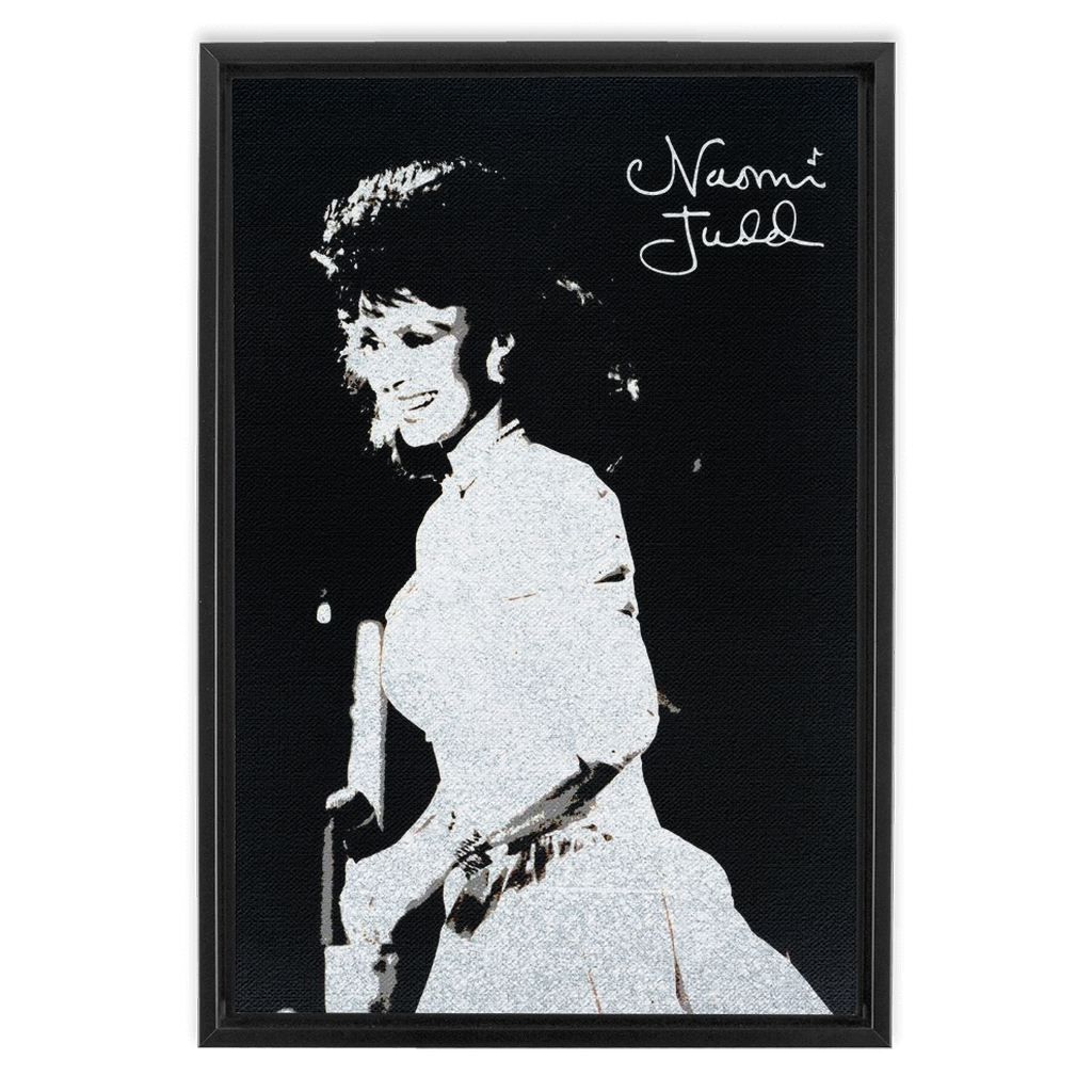 Treat yourself to a high quality 12" x 18" framed canvas art print of this beautiful image of Naomi onstage with her signature printed in silver on black canvas.