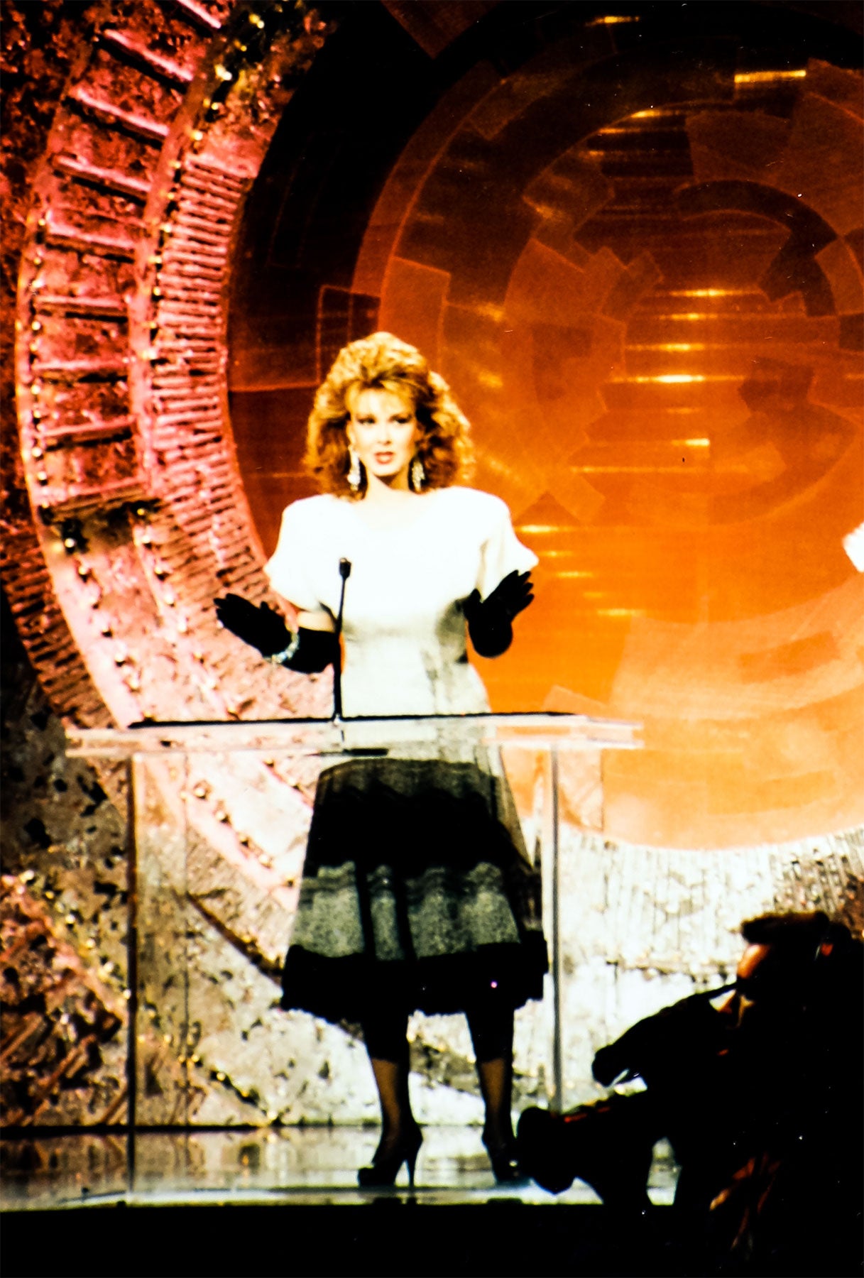 Photos from the 22nd annual Academy of Country Music Awards ceremony, hosted by Naomi, Wynonna, and Patrick Duffy, April 1987, in Buena Park, California.